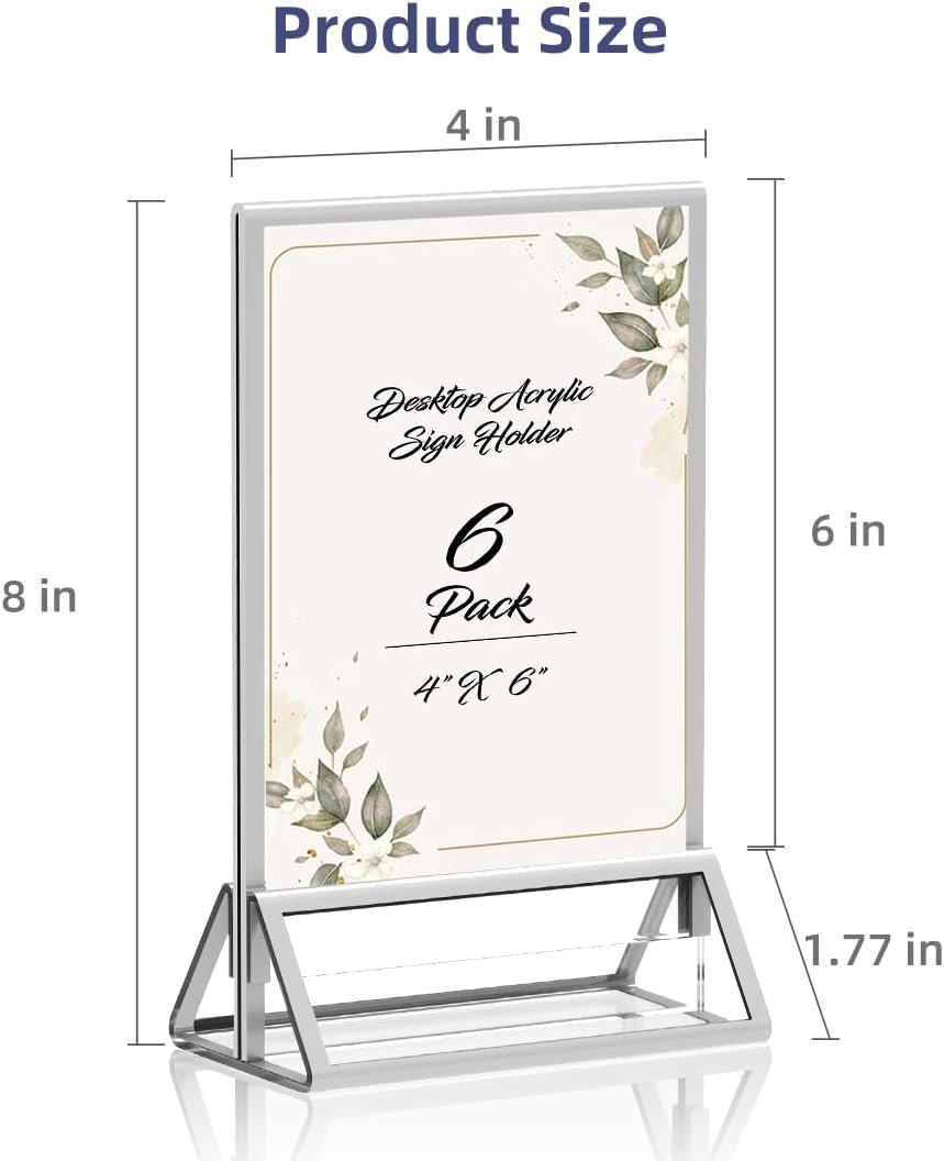 - Stable Sign Holder: The base of each 4X6 acrylic sign holder is wide and stable, The bottom of the acrylic display stand is designed with triangular slot inserts for easy assembly or disassembly, increasing the stability of the display stand