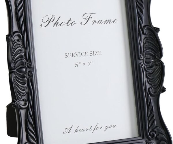 5x7 Black Picture Frame, Vintage Ornate Decorative Hand-Carved Resin Photo Frame with Detailed Design for Tabletop Display or Wall Hanging, Black Home Decor
